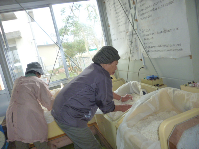 五千五区地区の味噌作り会に仲間入りして、かっちやん、みいちやんの育てたこしひかりで、麹を作り、友達のご主人が育てた大豆使いました。愛情いっぱいで育った、米、大豆です。