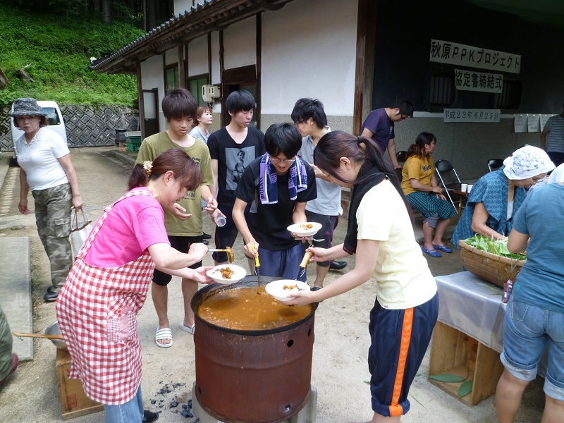 聖滝森の楽校開校します。自然林の落葉のジュウタンを敷き詰めた散策道やイベント会場 そして聖滝から流れる渓流、この里山で大人も子供も薪を切ったり薪割したりクラフト作りをして昼食はドラム缶がまで食事作り、午後は明治時代に全国に「印賀はがね」で知られた「たたら」についてたたらケイショウ会による 「たたらってなあに」「かなくそ石」探して身も心もリフレッシュし楽しく沢山の思い出作りを参加者全員でする聖滝森の楽校にしたいと思います。 では次の日程表を見て応募してください。 聖滝森の楽校参加者募集と日程 日時 28年11月13日 9時30分 集合 集合場所 鳥取県日野郡日南町菅沢 聖滝入り口 連絡先 古民家かつみや 宮本克範 (日南町菅沢729) 電 話 0859-87-0304 携帯 080-2909-0609 E-mail miyamoto1031-5@sea.chukai.ne.JP 参加費 大 人 2,000円 子 供 1,000円 募集人員 45人 レクレーション保険を懸けますので住所・氏名・連絡先を 提出してください。 少 雨 決 行 申込み締切り 11月6日(日) 参加者確認の為、決めたら早く連絡ください 日 程 9時30分 集合・受付・挨拶・日程等説明 (中電沈砂池広場) 9時50分 聖滝散策 (集合地から聖滝散策して森の楽校広場に帰る) 10時30分 薪切り・薪割体験・クラフト作り 11時30分 昼食づくり・準 備 全 員 12時10分 昼 食 13時00分 片付け 13時10分 続クラフト作り 13時40分 たたらのお話しとかなくそ探し 15時10分 後片付け 15時30分 解 散 服 装 遊び着程度 手袋 スニーカー又は長靴 当日特に寒い一日なら一枚多く服を持参してください。 PR |